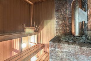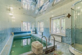На первом этаже дома располагается роскошный холл, создающий атмосферу гостеприимства и комфорта. Просторная кухня-гостиная с камином станет любимым местом для семейных ужинов и теплых вечеров в кругу близких. Здесь же находится современный бассейн с сауной, позволяющий расслабиться и восстановить силы после насыщенного дня.