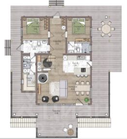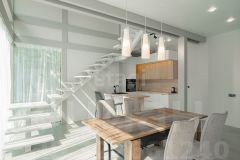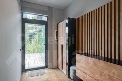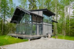 ДОМ: строится по элитной дорогостоящей технологии фахверк, которую отличает стильный и современный внешний вид, надежность и долговечность, большая площадь панорамного остекления, возможность свободной планировки внутри дома. Каркас дома построен из клееного бруса, стены - деревянный кирпич (специальный короткий брус). Предчистовая отделка. Фундамент - Сваи. Отопление электрическое. Электричество - 15 кВт. По периметру дома расположена просторная терасса. На первом этаже расположились: 2 спальни, коридор, 2 с\у, кухня, Гостинная, сауна, душевая, терасса.