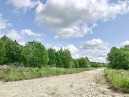 Подъезд к участку - грунтовая дорога, охраняемая территория со шлагбаумом.