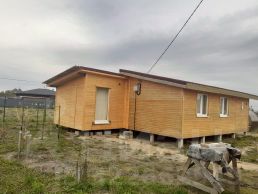 Дом 66.3 - каркас 150 мм , сделано утепление 15 см ( мин и каменной ватой везде) Крыша покрыта ондулином под черепицу. Фундамент - сваи. Канализация септик самотёчный с 3 камерами очистки.