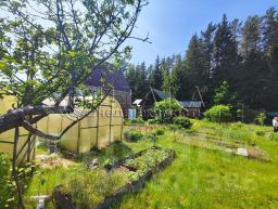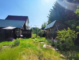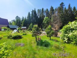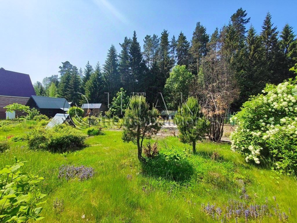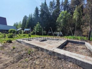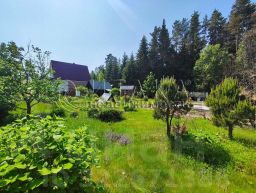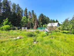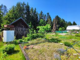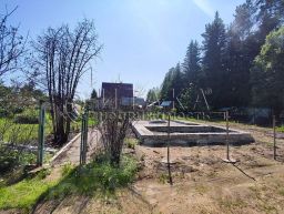 Участок примыкает к лесу, фактическая его площадь 14 соток. Участок ровный и сухой. Разработан, есть дренаж, организованы грядки, высажены плодово-ягодные кустарники и декоративные растения. На площади располагаются фундамент площадью 6Х9 метров от разобранного дома, баня с подключенным водонагревателем, 2 парника, отдельный сарай для хранения хозяйственных инструментов и для дров и туалет. Электричество проведено.