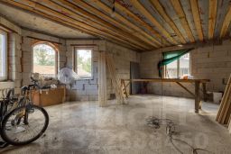 Стены дома с наружной стороны утеплены, обшиты сайдингом. Внутри без отделки. В котельной установлен насос для подвода в дом водоснабжения.