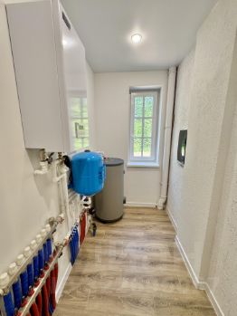 Отопление: теплые полы на первом этаже и с/у второго этажа, радиаторы на втором этаже.