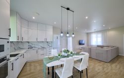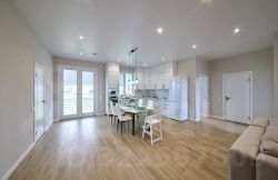Продается абсолютно новый каркасный дом 137 м2 на учacткe 12 coтoк. Гарантия 3 года!! Дом спроектирован по американской концепции просторного и основательного коттеджа на всю семью с большой гостиной и спальнями. Высота потолков 3 метра. Дом сделан с использованием дорогих и качественных материалов и комплектующих на всех этапах строительства и отделки. Фундамент - железобетонные сваи, стены - утеплитель скандик 150 мм, фасад - фиброцементный сайдинг, кровля - металлочерепица. Установлена система вентиляции, фильтрации и подогрева воздуха с выводами в каждую комнату. Дом очень теплый и готов для круглогодичного проживания, проведены все коммуникации. Электричество 15 кВт, вода - индивидуальная скважина, горячая вода и отопление - эл. котел Zota 9кВт, бойлер 100 л, ЛОС. Дом полностью укомплектован и продается со всей мебелью и техникой. В доме 2 маленькие спальни и большая мастер-спальня с отдельным санузлом и гардеробной, второй санузел с душем, кухня-гостиная, тех. помещение, хозяйственная комната и технический чердак.