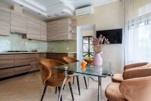 Дом оснащен системами приточно-вытяжной вентиляции, кондиционирования, охранной сигнализацией, видеонаблюдением, имеет резервный электрический котел на автоматике, газогенератор на случай отключения электричества, накопитель для воды