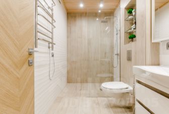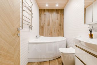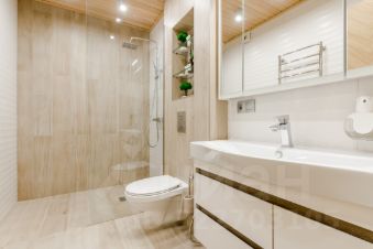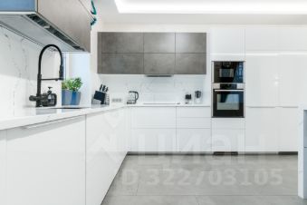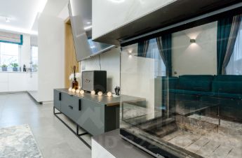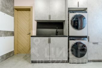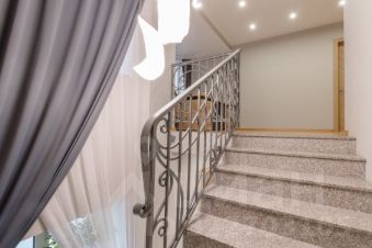 На 1-м этаже дома расположена просторная зона кухни-гостиной с камином и выходом на террасу, постирочная и сан.узел с душевой. Террасу, при желании, можно сделать зимней, используя финское остекление, так как имеется уже перекрытие и основание. Пол первого этажа из керамогранита с подогревом. В кухне-гостиной стены и камин выполнены из венецианской штукатурки. Остальная отделка стен из штукатурки под окраску. Столешница и фартук кухни, подоконники во всем доме и лестница выполнена из искусственного камня. В кухне встроено два холодильника Liebherr, немецкая техника Neff, винный шкаф. Корпусная мебель выполнена в 2024 году из ЛДСП EGGER.