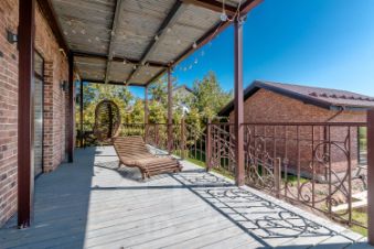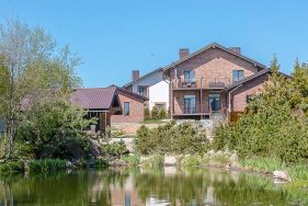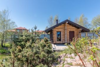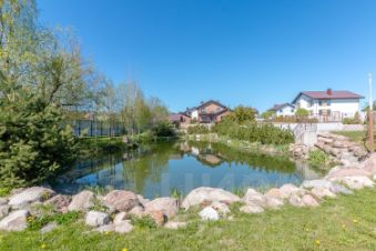 На территории участка расположена баня с финской сауной из сруба. Полы керамические с обогревом, сан. узел с душевой. При необходимости можно обустроить баню со спуском в пруд, так как она находится на самом берегу. На участке возведен гараж на 3 машиноместа, с техническим помещением под газовое оборудование, обеспечивающее газоснабжением всех построек. Так же, в гараже предусмотрено помещение для хранения мототехники с отдельным въездом. Выполнена стяжка пола с обогревом, предчистовая отделка. Так же, на участке в стадии строительства находятся: летняя кухня, которая может функционировать зимой, и чаша круглогодичного бассейна. Стены кухни и гаража из керамического кирпича с облицовкой клинкерным кирпичом в едином стиле с домом. В чаше бассейна выполнена частичная обвязка труб и устройство строительных отверстий для подвода водоснабжения, водоотведения. На все объекты есть проекты.