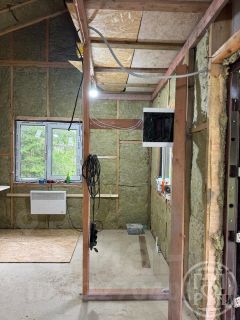 На участке есть постройка из которой планировалось сделать баню с зоной отдыха.