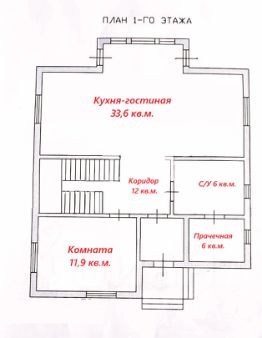 1й этаж: кухня-гостиная 33 м² с эркерными окнами в пол и действующий камин, гостевая спальня, санузел, прачечная (кладовая)