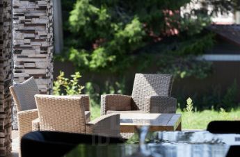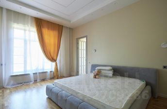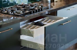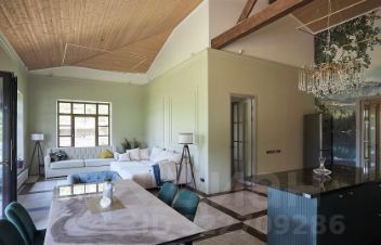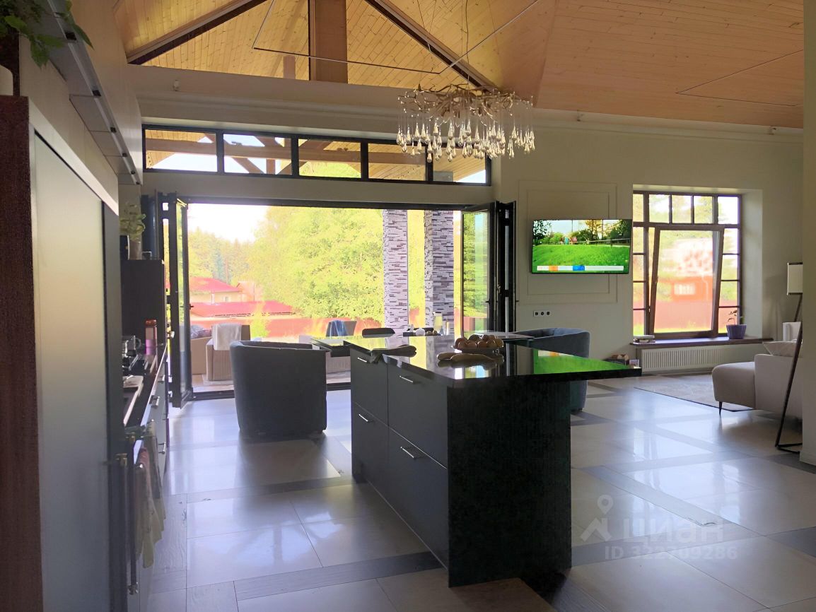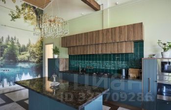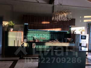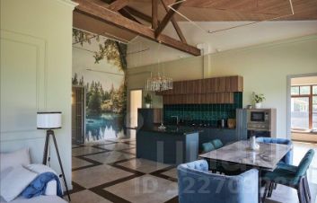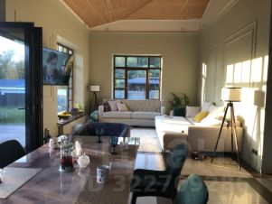 - просторная кухня-гостиная со вторым светом и выходом на террасу через портальную дверь (4,6 м), кухонный гарнитур со встроенной техникой - 5 м по стене плюс островная часть 2х1 м с местом для барных стульев, обеденный стол 2.6 м, мягкая мебель ROOMA design & furniture. Терраса - 36 кв.м. меблирована плетеной мебелью. Три большие комнаты (по 22 м с нишами под встроенные шкафы, кабинет 14 кв.м, большая комната-гардеробная с окном и отдельными встроенными нишами под обувь, комната-холодильник 7 кв.м., три санузла (ванная, душевая, гостевой) с немецкой сантехникой HansGrohe, инсталляциями TECE, мебелью, зеркалами.