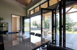 Портальная дверь - трехкамерные стеклопакеты, алюминий, ширинах открытия - 4600 мм, тип открытия гармошка.