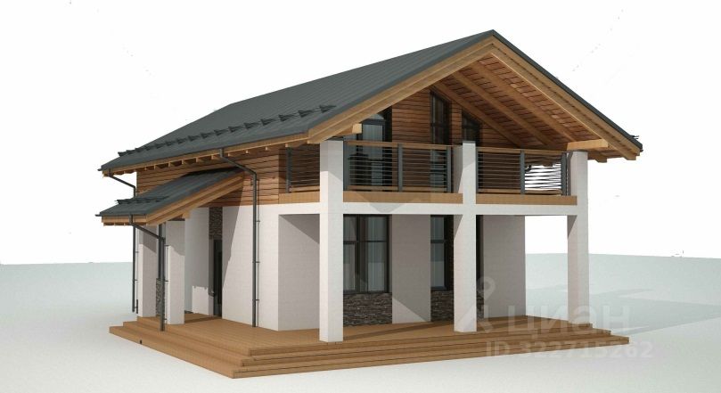 Стоит бревенчатый дом с печкой, идеальный для летнего отдыха.