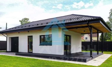 Крыша — деревянная стропильная система с покрытием из мягкой черепицы.