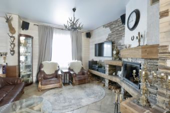 наружная отделка — декоративный камень, внутренняя — имитация бруса;