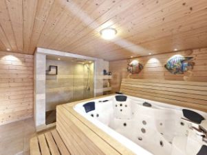 Первый этаж дома предлагает вам бильярдную и комнату отдыха общей площадью 80 кв.м., где вы сможете расслабиться после долгого дня, наслаждаясь сауной и джакузи.
