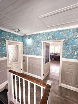 В доме предусмотрено 5 санузлов, высокие потолки (3,6 м) и стены толщиной 60 см обеспечивают отличную звукоизоляцию и комфортный микроклимат. Утепленная крыша (40 см) и полы из натурального дерева создают атмосферу уюта и тепла.