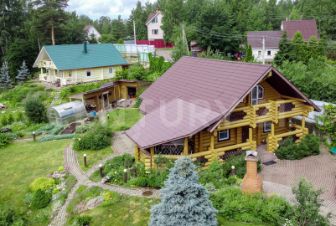 Дом 2-х этажный со вторым светом и высотой потолка 6.68 м, предназначен для постоянного круглогодичного проживания 2008 года постройки. Сруб из тесаного неоцилиндрованного бревна диаметром 28-32см, выполнен по проекту Honkа. Стоит на ленточном фундаменте.