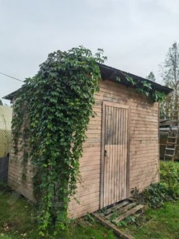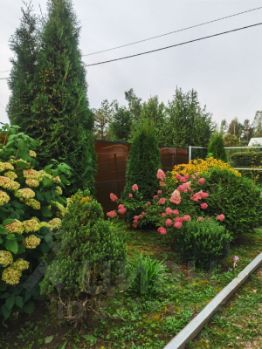 Кроме дома на участке дополнительно есть сарай, помещение под душ и биотуалет, теплица, подведен летний водопровод. Участок разработан и ухожен - имеются посадки (сливы, яблони, смородина, черноплодная рябина, декоративные растения), грядки оформлены. Есть парковочное место на один автомобиль.