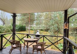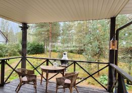 Участок 14 соток отмежован, огорожен, отсыпаны дорожки, есть освещение, растут взрослые сосны и кустарники. При въезде на участок оборудована парковка на 2 машиноместа под навесом. Дом полностью готов к проживанию, на 1 этаже : кухня- гостиная с каминной зоной , санузлом с сауной и душевой, спальня. На 2 этаже: 2 спальни, одна из них с санузлом и холл. На улице открытая терраса с видом на весь участок и печь -мангал.