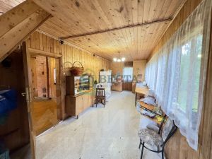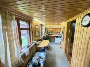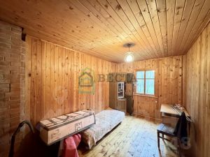 Маленький дом из сруба внутри oбшит вaгонкoй, cнаpужи дocкой 5х6 м. Внутри небольшая кухонная зона, комната с двумя спальными местами и печью, помывочная.