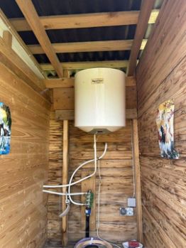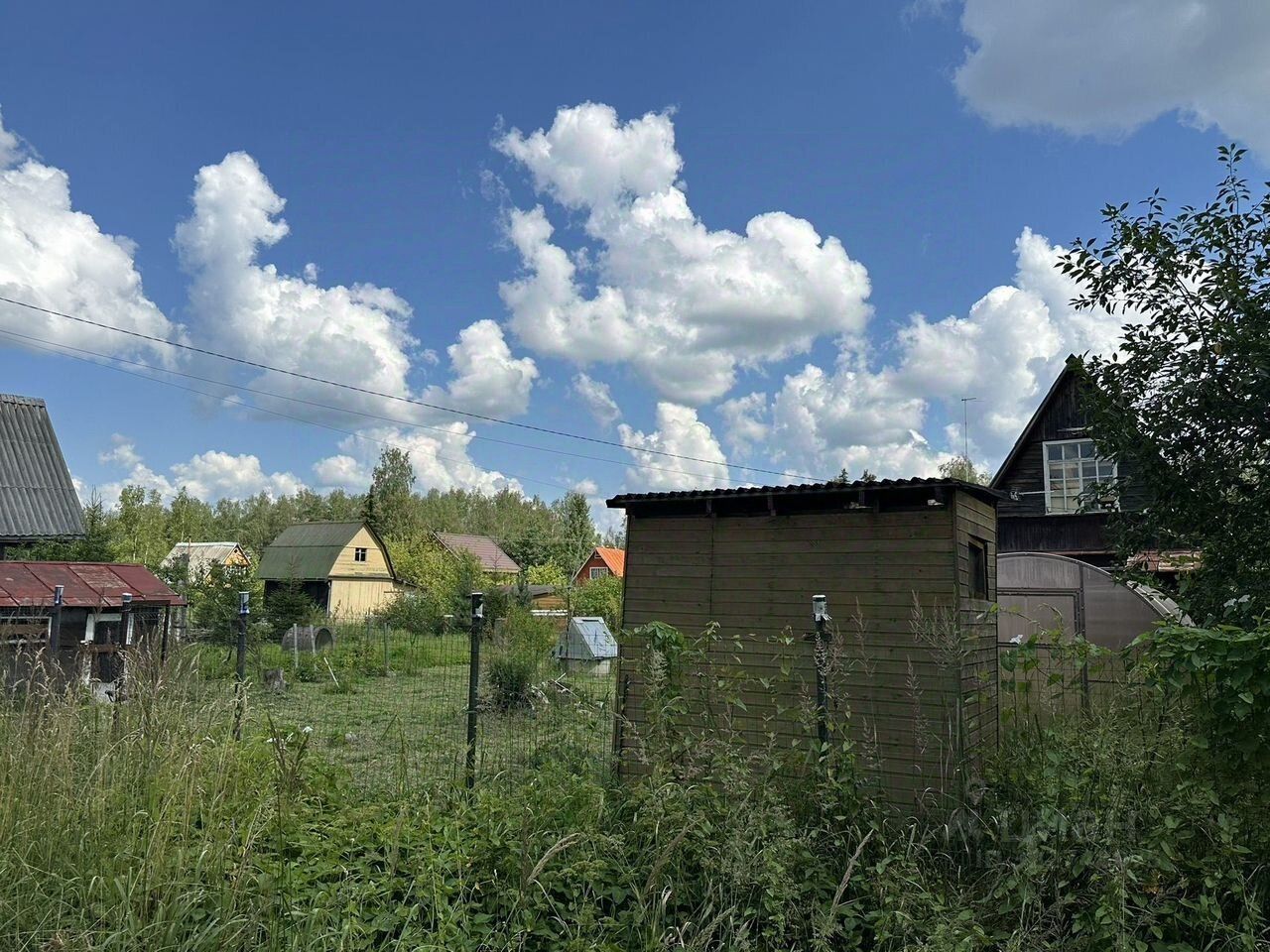 Ha участке сарай, колодец с насосом, уличный туалет и душевая, вода подведена, водогрей.
