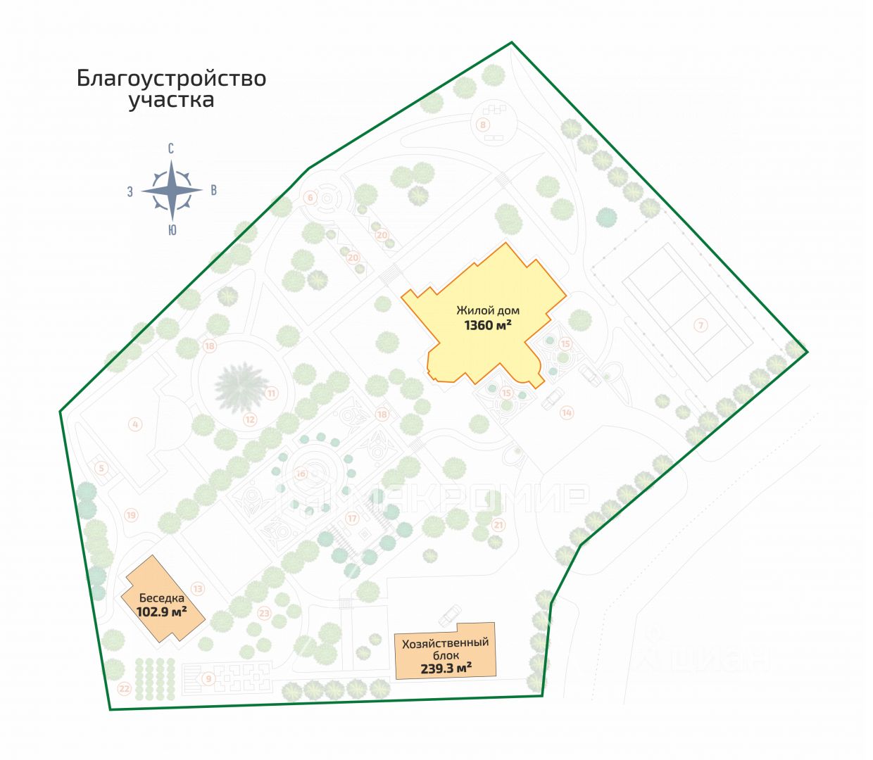 На участке возможно разместить роскошный сад, теннисный корт, банный комплекс и всё, о чем вы давно мечтали