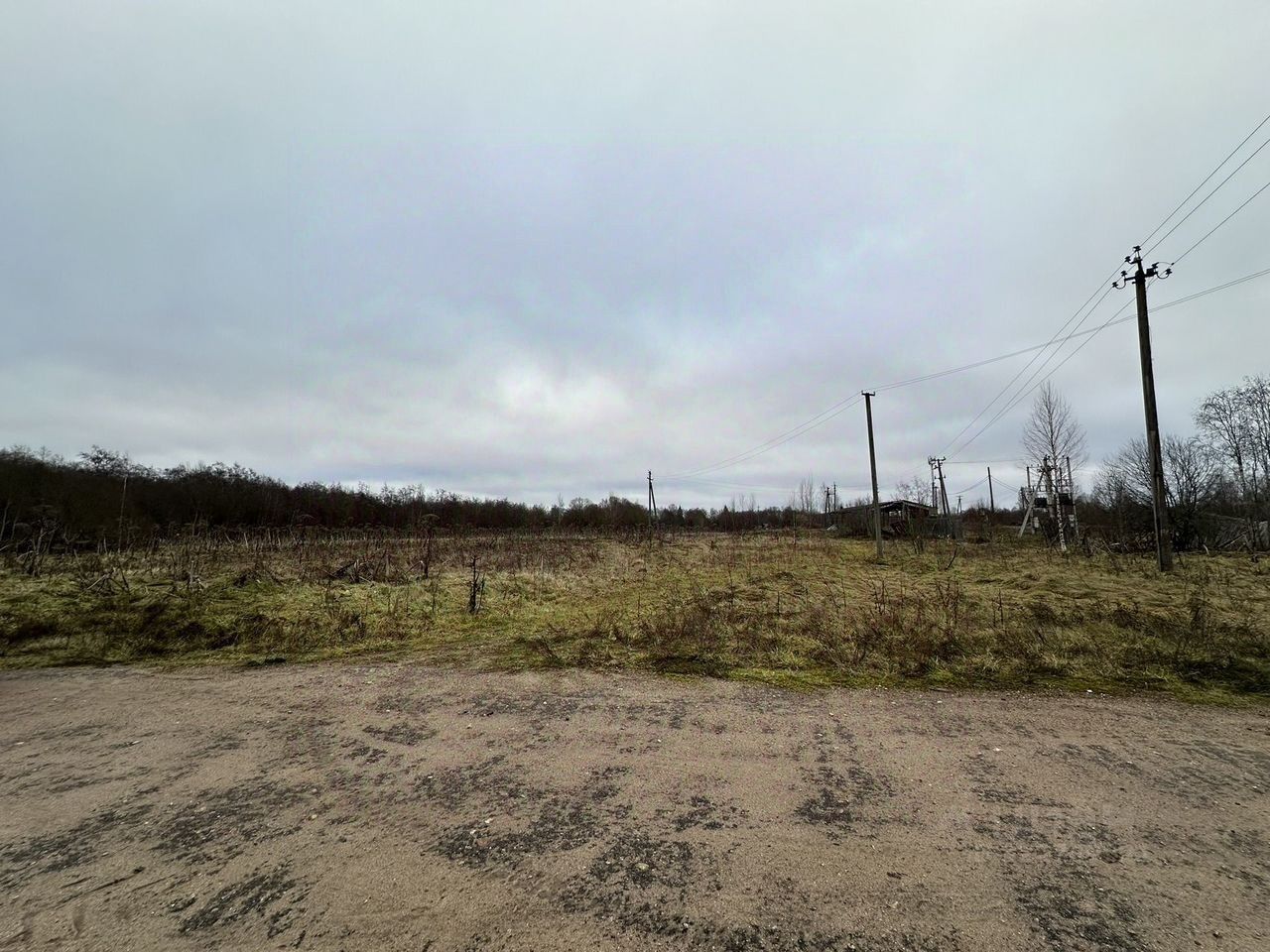 По границе участков проходит линия электропередач.