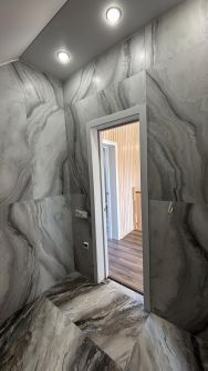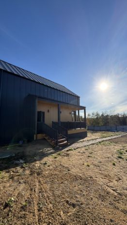 Дом построен из антисептированного сырья 1-го сорта. Установлена сетка от грызунов. Наружная отделка - Кликфальц 0.45, входная дверь с терморазрывом, металлопластиковые окна и террасные (балконные) двери.