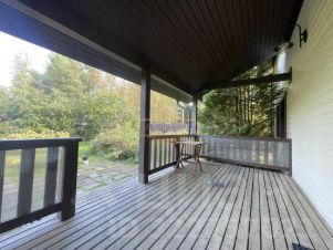Дом построен по Шведской технологии из каркасных панелей. Отделка наружных стен - вагонка имитатор бруса. Отделка внутренних стен - блок-хаус из лиственницы. Окна с деревянными двухкамерными стеклопакетами. Все двери в доме - клееный брус. Крыша двухскатная из металлочерепицы Rannila Monterrey. Фундамент - монолитная плита. Дом очень теплый и экологичный!