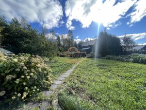 Участок огорожен деревянным забором. Есть плодовые деревья, цветы, парник со стеклопакетами. На участке есть хозяйственная пристройка.