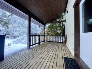 Дом построен по Шведской технологии из каркасных панелей. Толщина панелей 30 см! Отделка наружных стен - вагонка имитатор бруса. Отделка внутренних стен - блок-хаус из лиственницы. Окна с деревянными двухкамерными стеклопакетами финского производства. Все двери в доме - клееный брус. Крыша двухскатная из металлочерепицы Rannila Monterrey. Фундамент - монолитная плита. Дом очень теплый и экологичный!