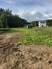 Участок выкошен, ровный, сделано межевание. Соседи с двух сторон есть, живут постоянно. Проведен газ у соседа, электричество, значит технические условия для этого есть.