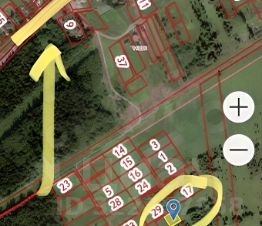 На фото скрин с кадастровой карты, желтой полосой отмечена дорога Питер — Ивангород.