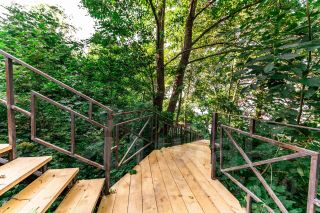Парковая и лесная зоны гармонично сочетаются на территории усадьбы. На участке есть пруд с карасями, где можно приятно провести время. С берега открывается захватывающий вид на Финский залив, а шум волн создаёт ощущение полной гармонии.