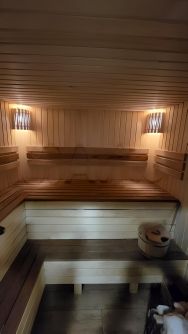 Новая Баня пятистенок 6х6, с душевой и туалетом. Комната отдыха, терраса. Отопление — электрический котёл.