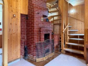 На первом этаже расположены просторная гостиная с камином, кухня, спальня, душ+туалет.