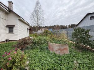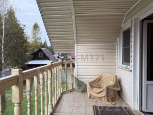 Двухэтажный дом общей площадью 110 кв.м. с уличной террасой. Построен из бруса и отделан сайдингом.
