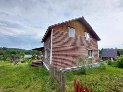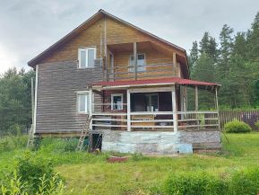 Дом 1 этаж брус, 2 этаж каркасный, утеплен (утеплитель 150 мм), фасады: блок хаус + имитация бруса, покрашен; фундамент свайный; крыша ондулин; окна пластиковые стеклопакеты. Дом полностью пригоден для круглогодичного проживания. В доме расположены: большая открытая терраса с видом на озеро; прихожая 3 кв.м.; холл с выходом на второй этаж (удобная двух маршевая лестница) 10 кв.м.; СУ совмещенный с душевой (установлен бойлер + раковина, унитаз) 6 кв.м.; светлая кухня 18 кв.м. с установленной мебелью; гостиная два окна с печью камином 20 кв.м. На втором этаже: холл с выходом на балкон с видом на озеро; две спальни 17 кв.м. и 15 кв.м. + большая кладовая. Дом теплый, светлый и очень уютный.