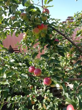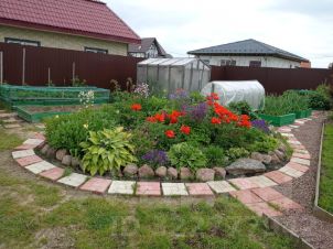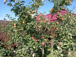 Много плодовых деревьев, кустарников и цветов. Проведен ландшафтный дизайн.
