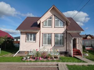 Двухэтажный мансардного тина, дом площадью 107 кв.м вмещает в себя 3 спальни в одной из них гардеробная, кухню, гостиную, гостевую, две совмещенных ванных комнаты, кладовую, прихожую, утепленный тамбур. Оформление помещений дома выполнено по индивидуальному проекту, дом строился для себя.