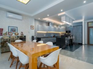 - Просторная кухня-гостиная с итальянской мебелью и техникой мировых брендов, выходящая на летнюю террасу — идеальное место для приема гостей и семейных ужинов.
