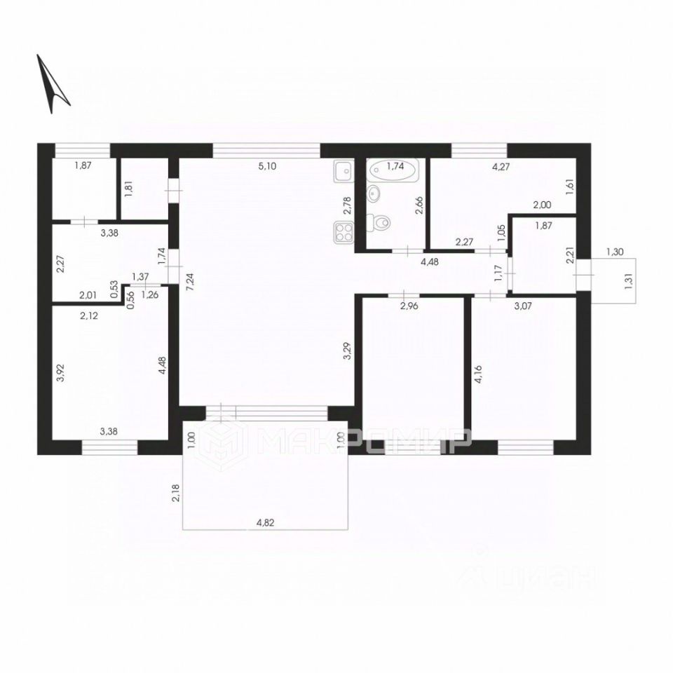 И это просторная кухня-гостиная с большими окнами во всю стену, с выходом на террасу и кладовой, три спальни, два санузла, несколько хозяйственных помещений.