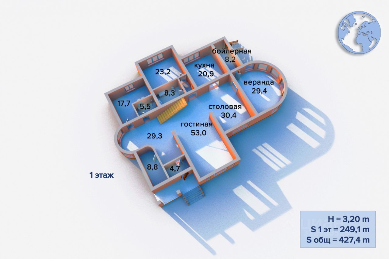 Просторный дом 427 м² с участком ИЖС 20 соток и подключёнными коммуникациями