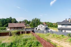20 соток (ИЖС), ровный, сухой, с забором из профнастила на кирпичных столбах. Установлены откатные автоматические ворота. Участок свободен для обустройства сада, детской площадки, бани или хозпостроек. Все инженерные системы размещены на участке и подключены.