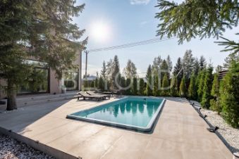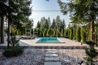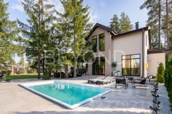 Продается новый загородный дом 203 кв. м на участке 11,5 кв. м в закрытом котеджном поселке "Савоя". На участке подогреваемый бассейн под открытым небом, выполнены все ландшафтные работы, вымощены дорожки, сделано освещение как на участке, так и на фасаде дома.