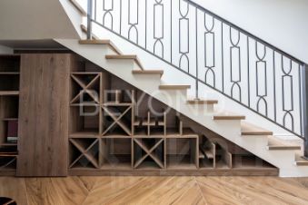 На первом этаже расположены: кухня-столовая с выходом на террасу, гостиная зона, гостевая спальня, гардеробная, постирочная, котельная.
