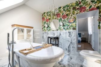 На втором этаже: мастер-спальня с гардеробной зоной и большой ванной комнатой, гостевая комната, детская, санузел.