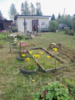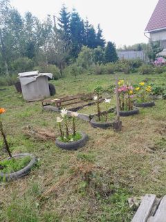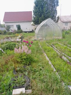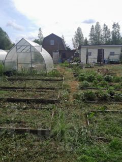 Растут яблони, слива, смородина, крыжовник.Имеются грядки.Овощи выращивать можно в теплице.