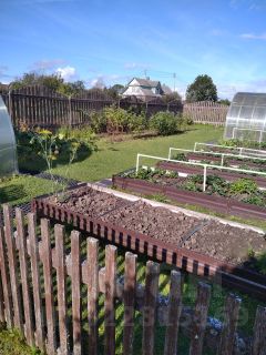Молодой плодоносящий сад: вишня, слива, яблони, груши, черешня, шелковица, голубика, черника, жимолость, смородина (красная и чёрная), крыжовник, малина (жёлтая и красная), клубника, земляника, актинидия, лимонник, виноград