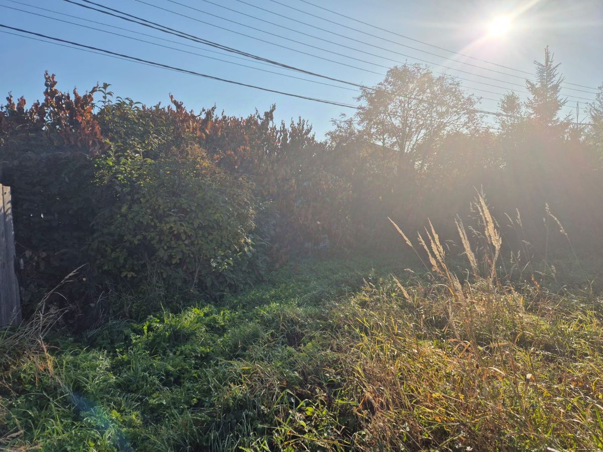 Участок частично благоустроен: есть несколько кустов чёрной смородины, слива, вишня и яблоня.